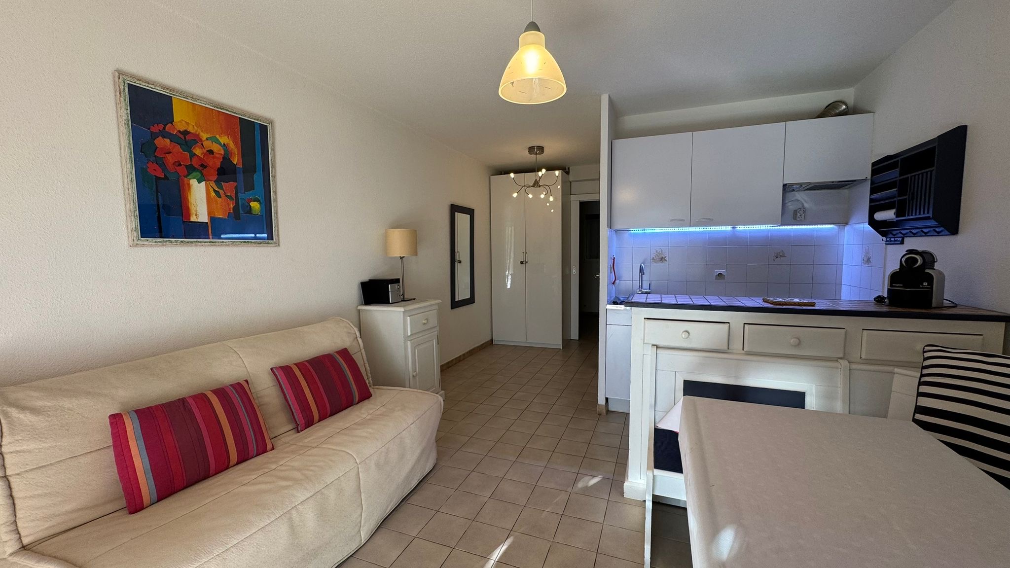 D’une superficie de 32 m², ce mazet T2 propose un aménagement fonctionnel et agréable pour un séjour en bord de mer.