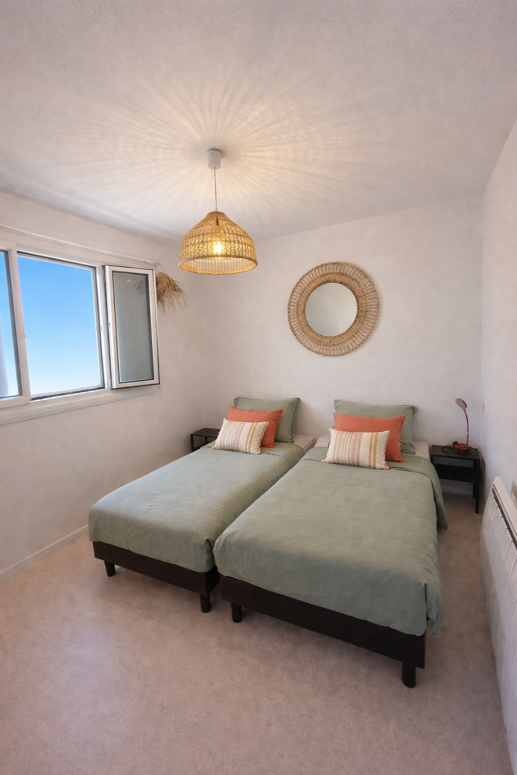 T3 de 50 m² avec vue mer panoramique au dernier étage d’une petite résidence sur les hauteurs de Saint-Clair. 2 chambres séparées et 6 couchages, idéal pour familles ou groupes d’amis. Grande terrasse en angle avec vue dégagée sur la mer et les collines. À 700 m de la plage de Saint-Clair et du centre-ville. Climatisation, wifi, parking privatif.
