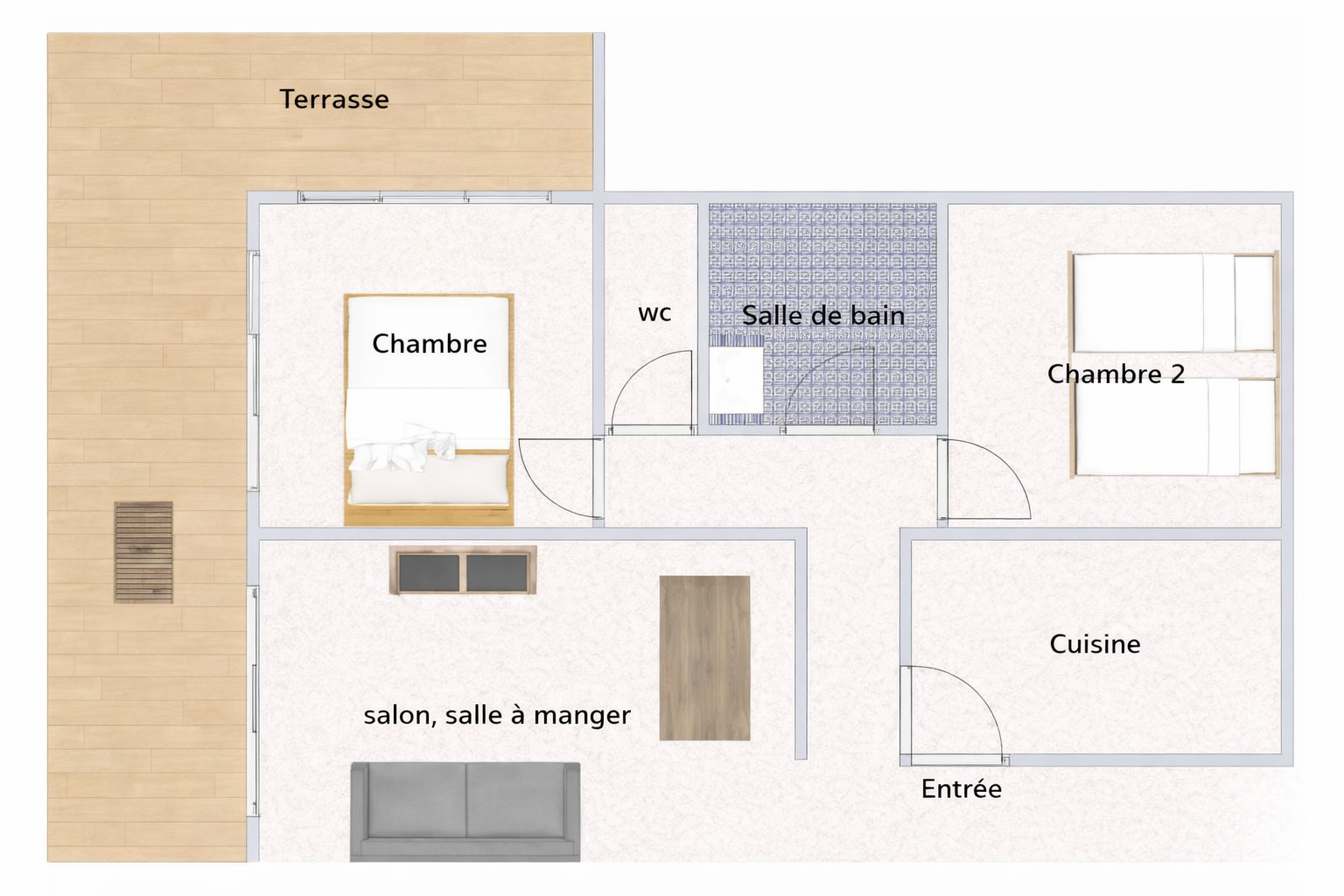 - Cuisine : plaques 3 feux, micro-ondes, Nespresso, réfrigérateur-congélateur