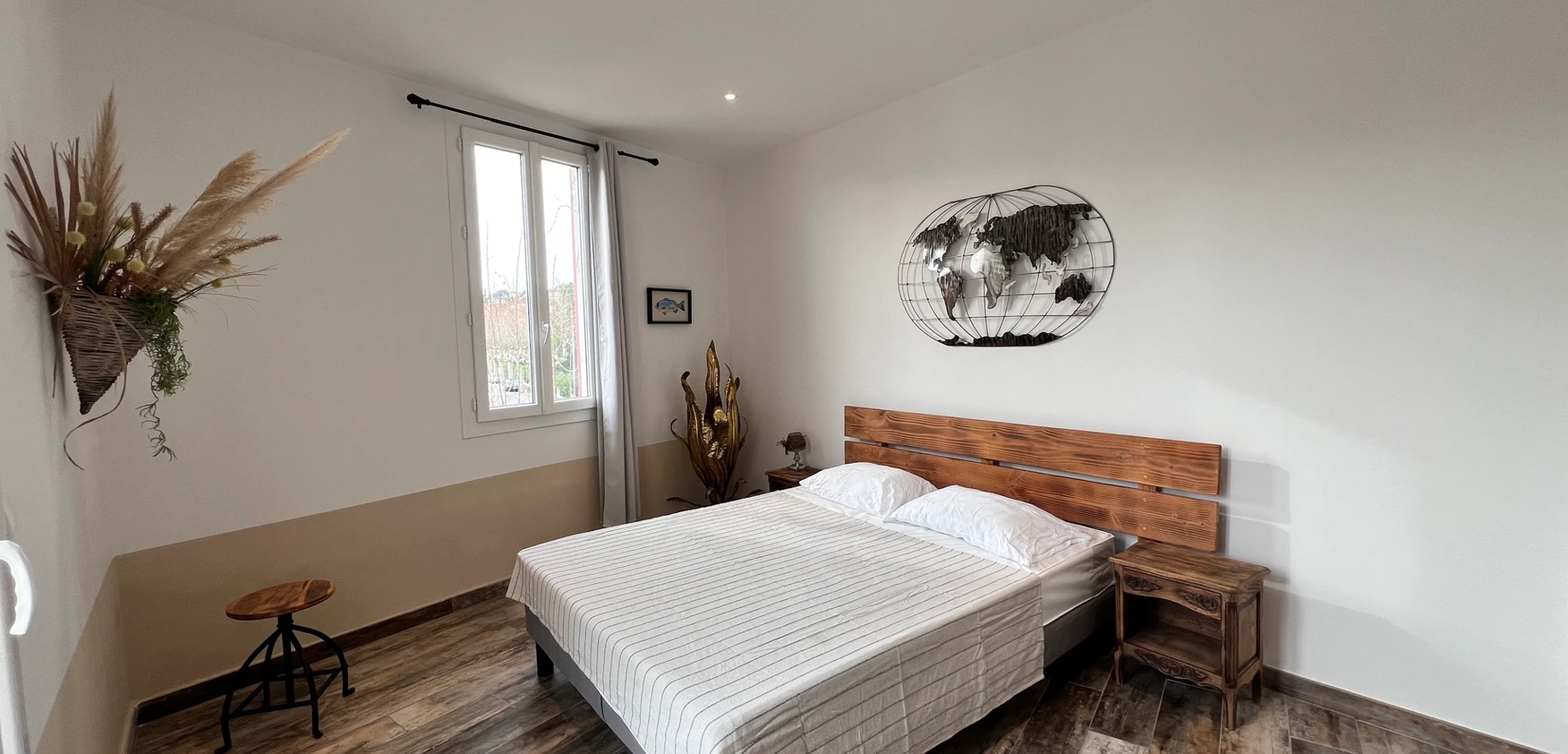 –Chambre avec lit de 160x 200 et placard, donnant sur la terrasse.